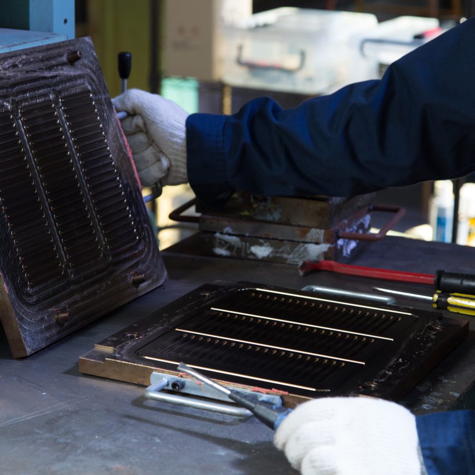 商品製作には、図面や見本があり簡単に完成できるものもあれば、形状から何度も何度も試作や打合せを繰り返し、硬度調整や色合わせ、細かな調整を必要とする製品もあります。